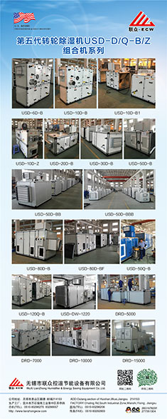 無錫市聯(lián)眾控濕節(jié)能設(shè)備有限公司成立于2004年2月,是一家長期致力于把空氣吸附分離技術(shù)應(yīng)用于空氣處理設(shè)備的科技型中外合作 企業(yè),主要研發(fā)生產(chǎn)轉(zhuǎn)輪除濕機(jī)組、熱泵除濕機(jī)組、空氣與空氣熱 能交換回收機(jī)組、蒸發(fā)冷卻空調(diào)機(jī)組、有機(jī)廢氣凈化處理機(jī)組等非 標(biāo)空氣處理設(shè)備。隨著生產(chǎn)規(guī)模的不斷壯大和產(chǎn)業(yè)化的精細(xì)分工, 聯(lián)眾公司與2011年10月在江蘇省宜興市萬石鎮(zhèn)工業(yè)園茶亭路8號, 一期投資5000萬元,置地25畝、建標(biāo)準(zhǔn)工業(yè)廠房10000平方米和辦 公樓3000平方米,重新注冊成立江蘇聯(lián)眾聯(lián)勝節(jié)能設(shè)備有限公司。 企業(yè)領(lǐng)導(dǎo)層決定確立江蘇聯(lián)眾聯(lián)勝公司以研發(fā)生產(chǎn)蒸發(fā)冷卻空調(diào)機(jī) 組、有機(jī)廢氣凈化處理機(jī)組等大型節(jié)能環(huán)保空氣處理設(shè)備為主;而無錫聯(lián)眾控濕公司則在無錫繼續(xù)以研發(fā)生產(chǎn)轉(zhuǎn)輪除濕機(jī)組、熱泵除濕機(jī)組、空氣與空氣熱交器為主。在國內(nèi)暖通空調(diào)工程領(lǐng)域,聯(lián)眾控濕公司研發(fā)各類轉(zhuǎn)輪除濕機(jī)的技術(shù)能力、生產(chǎn)各類轉(zhuǎn)輪除濕機(jī)的 裝備制造工藝水平處于本行業(yè)前沿。